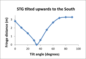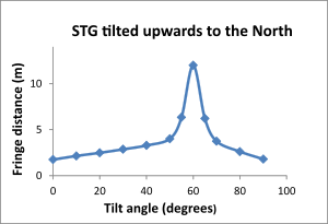 When the plane of rotation of the STG is parallel to the plane of rotation of the equator there is a very distinct drop in the distance between measured interference fringes. When the plane of rotation of the STG is at right angle to the plane of the equatorial axis there is a distinct peak in the fringe distance that suggests that the fringe distance may go to infinity .